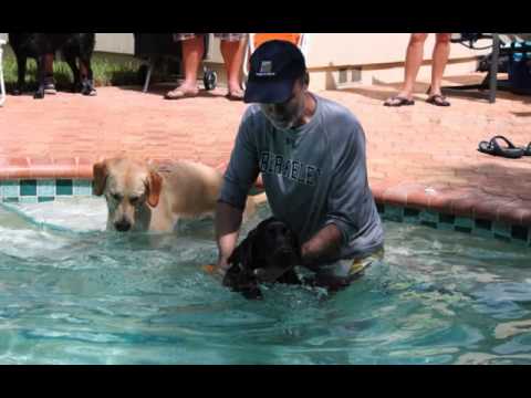 For now, let's concentrate on pool safety. Make sure that your puppy doesn't just jump into the pool. They should always go into the pool on command or wait for you to allow them into the pool. Your puppy should always know where the steps are and how to get out of the pool should they accidentally fall in.